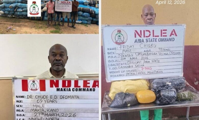 Operatives of the National Drug Law Enforcement Agency (NDLEA) have arrested a 93-year-old great-grandfather and a 69-year-old medical doctor in a sweeping series of intelligence-led operations that also led to massive seizures of illicit substances across multiple states.