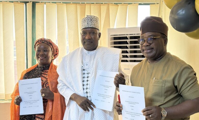The agreement which was consummated on Friday at the NHRC’s Headquarters, Abuja, was intended to improve information sharing, enable coordinated advocacy and strengthen joint responses to issues at the intersection of extractive governance and human rights.